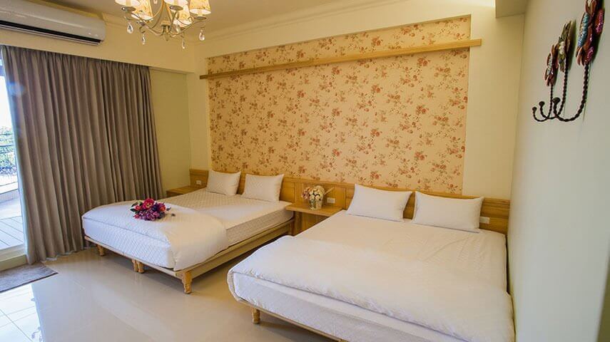 房間型式:套房 (二大床 , 有大陽台 ,有景觀 ,位於二樓)
